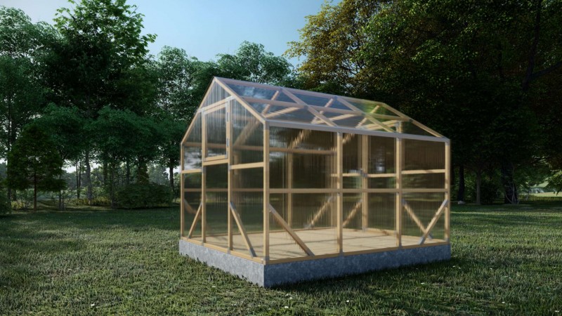 • Materiaal: geïmpregneerd transparant gecoat Zweeds grenenhout, 4 mm twin-wall polycarbonaat (0,6 kg/m2) afdekking en sterke 1,2 mm metalen frame connectors.