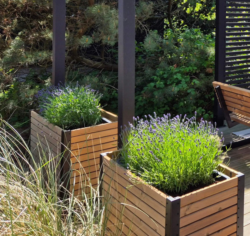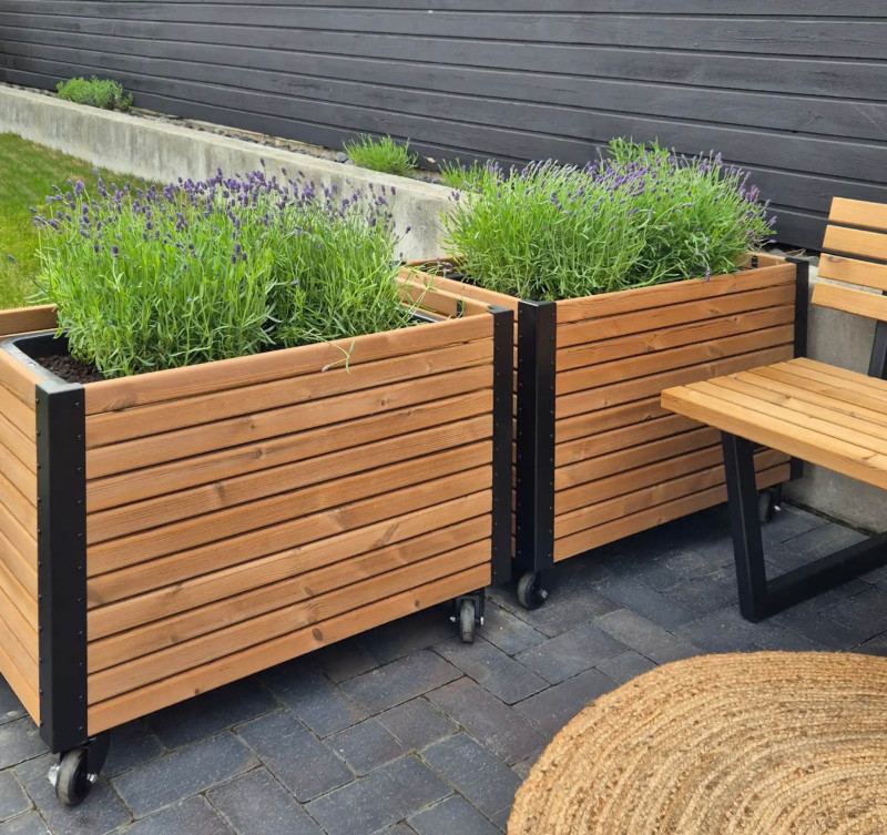 Productdetails Hoge Rechthoekige PlantenbakThermoWood® Cubic Op Wielen: