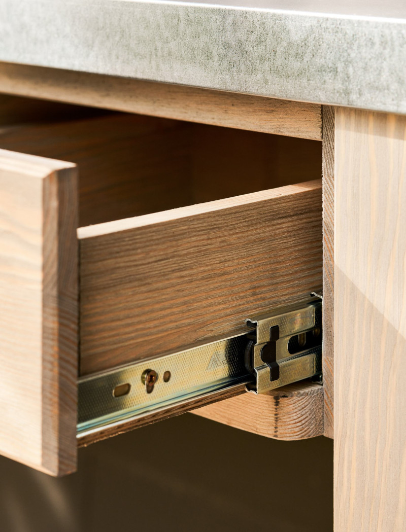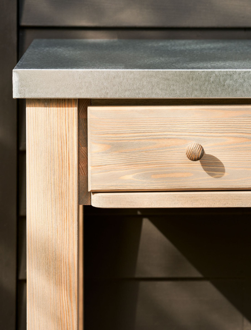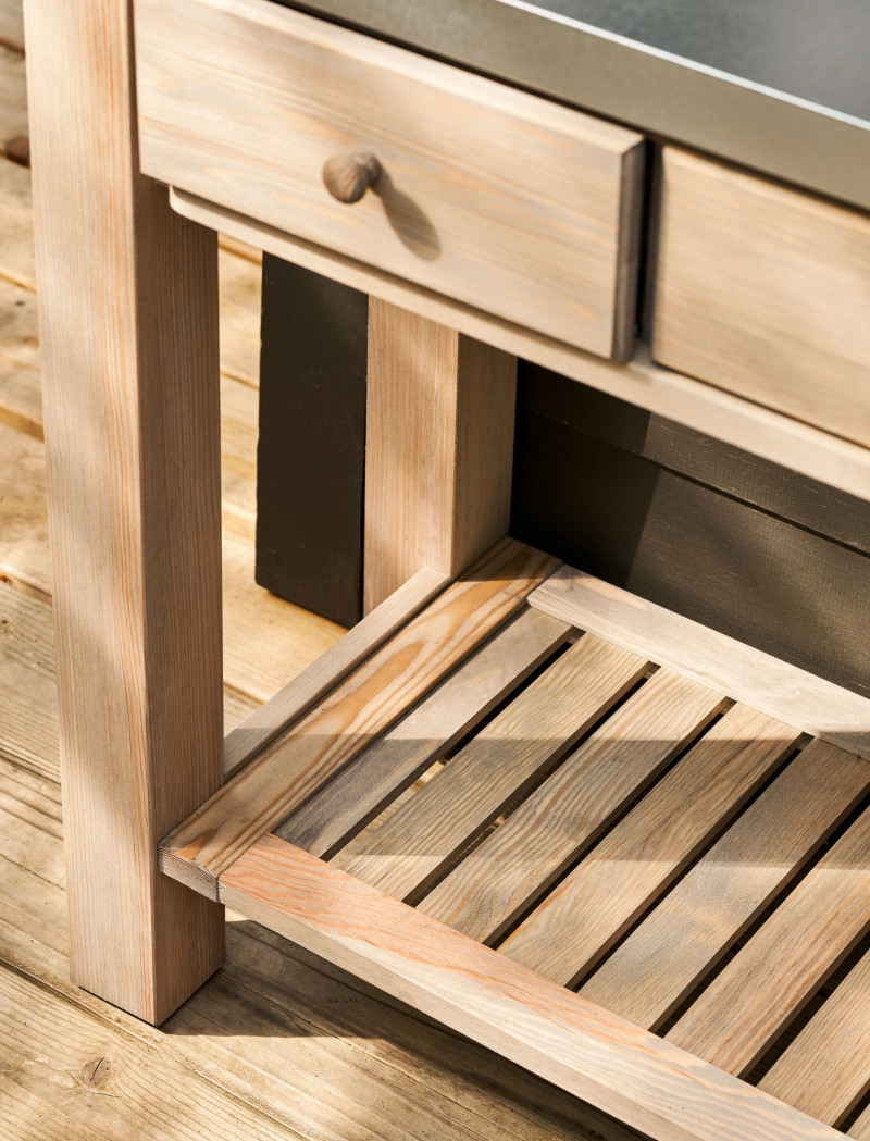 - Materiaal: FSC sparrenhout en gegalvaniseerd stalen werkblad