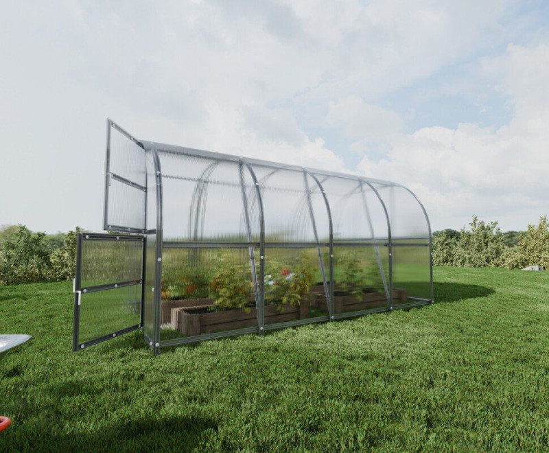 • Bijzonderheden: (Doe-Het-Zelf) zelf bouwpakket, met gebruiksvriendelijke instructies maken de montage eenvoudig, alle elementen zijn reeds voorzien van voorgeboorde gaten voor de verbindingen. Het polycarbonaat wordt op de rol geleverd en moet zelf op maat worden gesneden. Ontdek deze hoogwaardige metalen boogkas: voor hobbykwekers die stevigheid, slim design en functionaliteit belangrijk vinden.