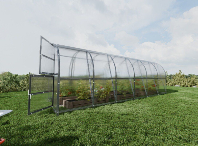 - Ramen: een raam (1 stuk) bevindt zich aan de achterzijde van de tunnelkas. Dakramen zijn optioneel en zijn niet standaard ingegrepen.